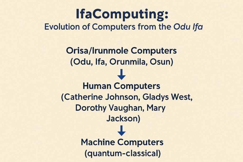 Learn more about the period when computers were human. The Ifa Computing Platform explains when computers were Orisa or Irunmole, the ancestors of human computers. The figure below shows the evolution of binary coding, which originated from the Odu Ifa: