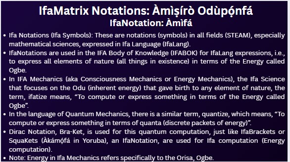 In IFABOK, we study this mathematical culture (Ifa Dida and Oosa Dida) formally as the metamathematics called Ifa Mechanics.