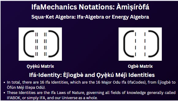 Also known as Energy Mechanics, CEN Mechanics, or the Mechanics of Everything (MechoE), Ifa Mechanics reveals IFABit (Energy or Ogbe) as the metamathematical foundation of all fields of knowledge collectively called IFA Mathematics, the IFA Body of Knowledge (IFABOK), or the TOE.