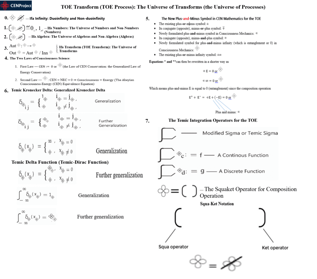 These universal meta-numbers are forms of Energy (CEN) and are used to encode information on all fields of knowledge in a holistic manner in the IFA Binary System of Education. They form the core of the IFA Internet, which is the Theory of Everything.