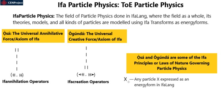 Also, Ifa-Physics is the term for Physics done through the Lens of Ifa or using Ifa Tools or the First Principles of Ifa (the 16 Principal Ifa Codes):