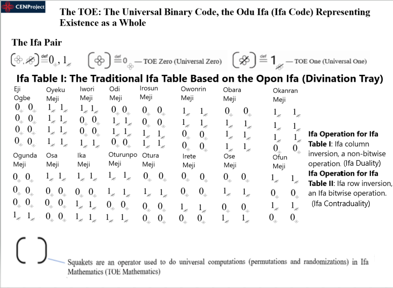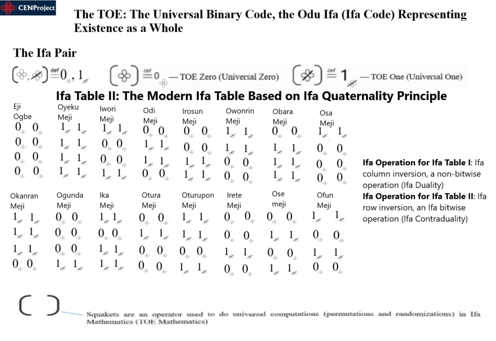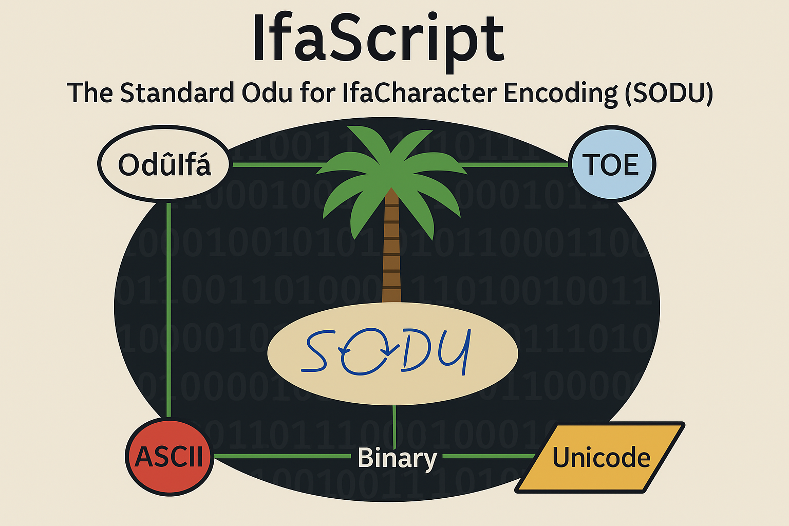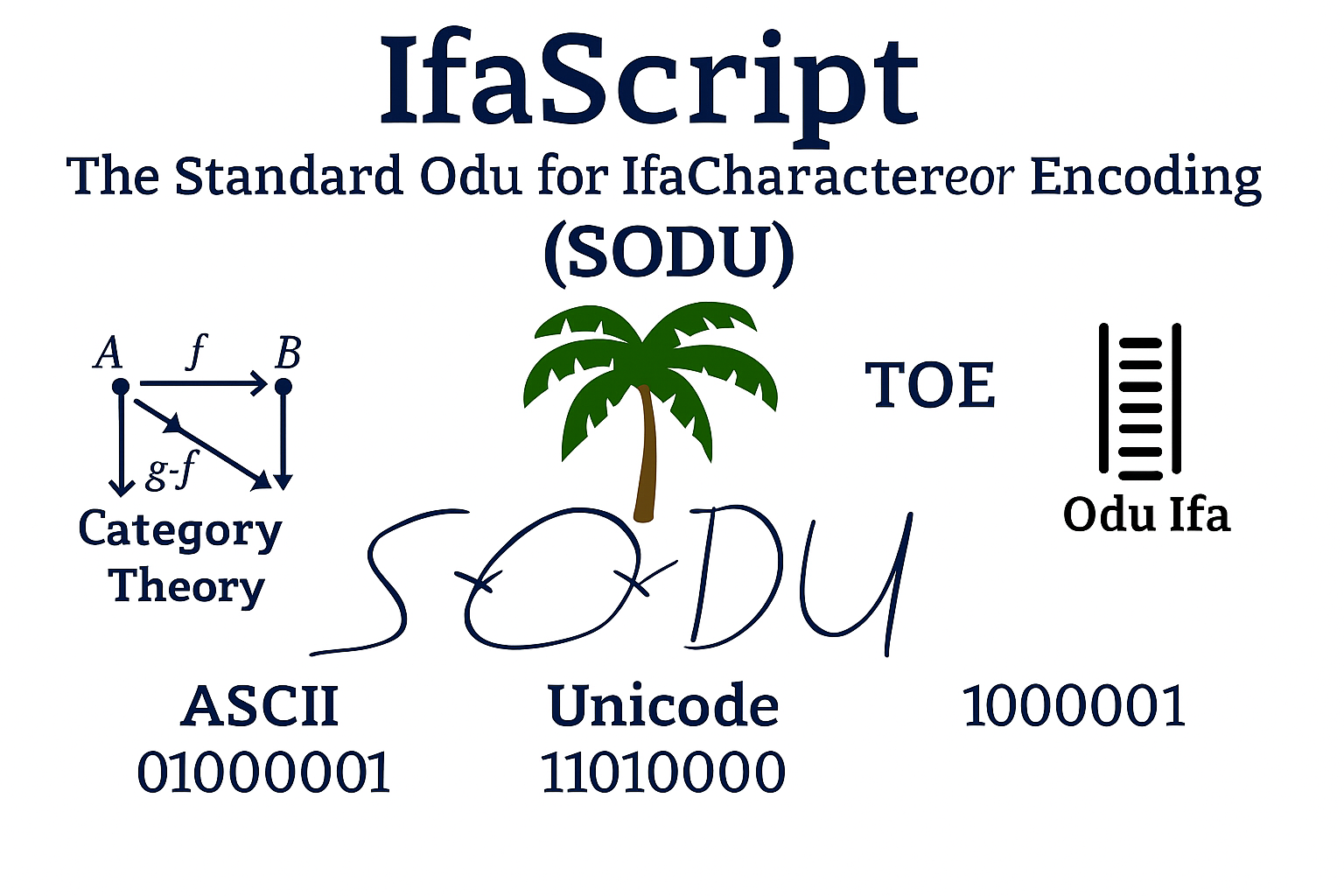 Also known as IfaScript, SODU is a key element of Ifa Language (IfaLang), providing the Standards for the Odus used for Energy-based communications, Ifa Computing, and the IFA Internet, also called the Theory of Everything (TOE), IFA Mathematics, the Ifa Binary System of Education, or the IFA Body of Knowledge (IFABOK).