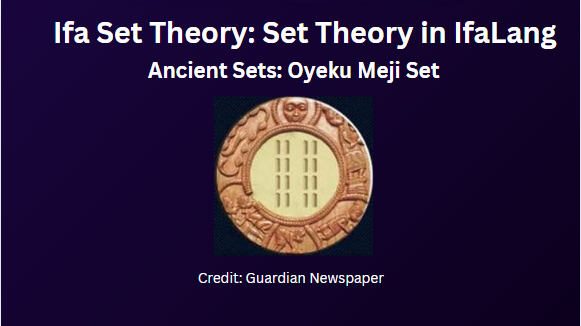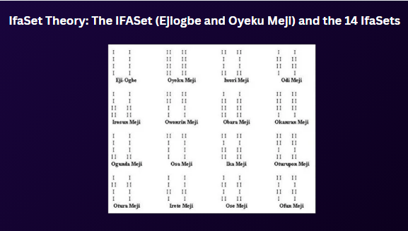 Ifa Set Theory is based on Ifa Simulation Theory, which says that everything has its own Odu that birthed it, i.e., everything is a form, simulation, or function of Energy: Everything is a manifestation of Olodumare (Energy in the scientific context).