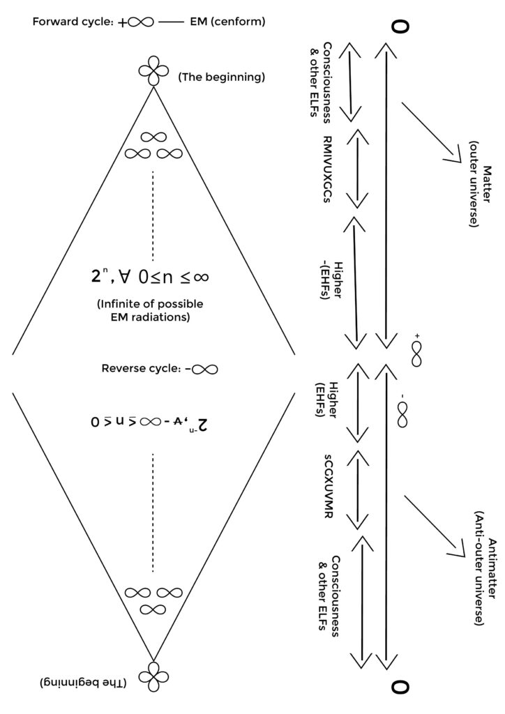 This meta-structure of IFA Mathematics is a comprehensive (full) electromagnetic (EM) spectrum containing all possible EM radiations, including the currently known regions of the EM spectrum and unknown regions, such as those of ordinary (baryonic) matter, antimatter, dark matter (non-baryonic matter), dark antimatter, and others. Also known as the ToE EM Spectrum or CEN Extended EM Spectrum (CEES), it is the Electromagnetic Spectrum of Everything (EMoE), an aspect of PoE in the TOE.