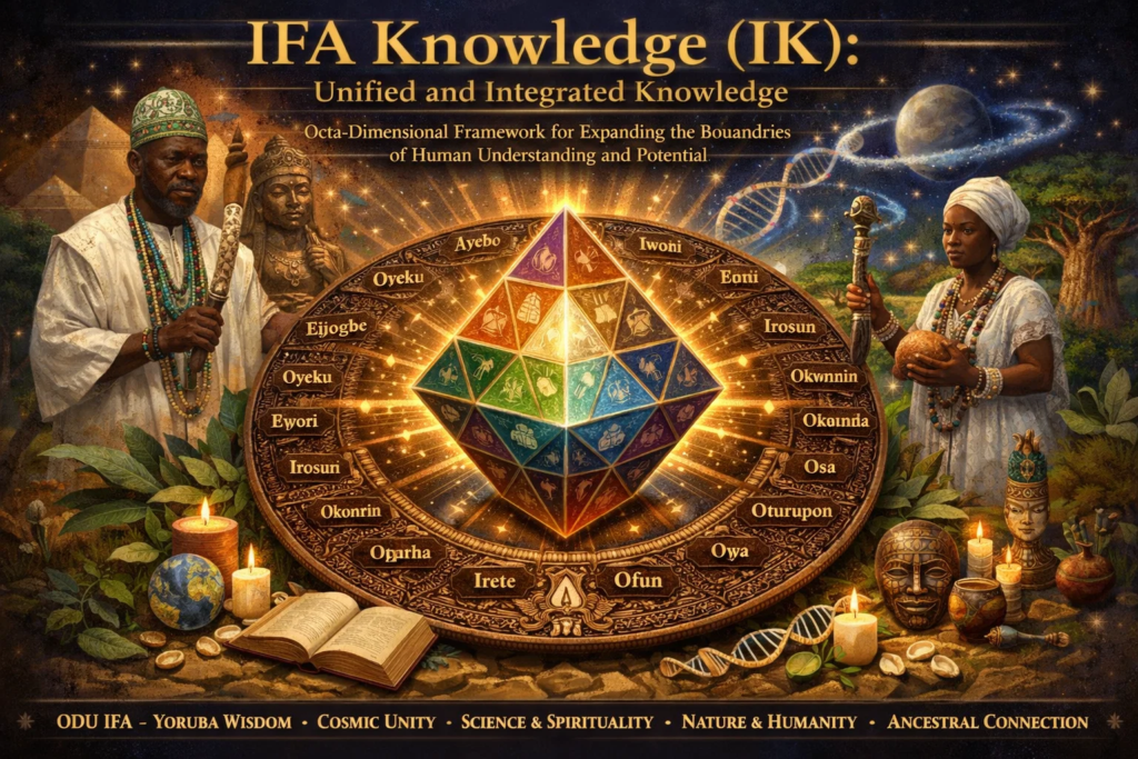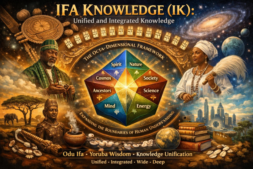 IK treats every field — physics, biology, economics, philosophy, computation, linguistics, and consciousness studies — as nodes within the unified knowledge graph called Ifa Knowledge Graph governed by deep structural correspondences, which are the 16 Principal Odu Ifa (Ifa Codes).