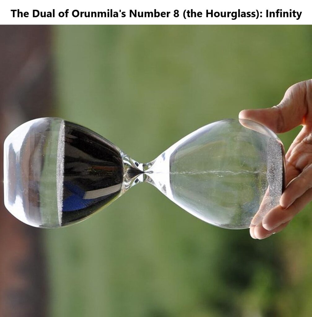 The dual (superpartner) of Ifa computers are Oosa computers, which are feminine Energies (Orisa) that serve the same purpose as Ifa Computers — knowledge unification and integration. Inverting Orunmila’s number gives infinity, which is Odu’s number: